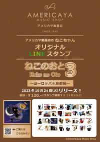 2023/10/24 当アメリカヤ楽器店のねこちゃん オリジナルLINEスタンプ『ねこのおと3 ~ヨーロッパ&京都編~』本日リリース! 当アメリカヤ楽器店のねこちゃん オリジナルLINEスタンプ 『ねこのおと3 ~ヨーロッパ&京都編~』 本日リリース! 『ねこのおと 3 ~ヨーロッパ&京都編~』 音楽を楽しむ、ねこちゃんLINEスタンプ「ねこのおと」第3弾! 第3弾は「ヨーロッパ&京都編」! 伝えたい気持ちを「音楽を楽しむねこちゃん」と一緒に! ↓ご購入はこちらからどうぞ♪ https://line.me/S/sticker/24694012 = = = = = 「あなたの人生に素敵な音楽を」 ~ ...